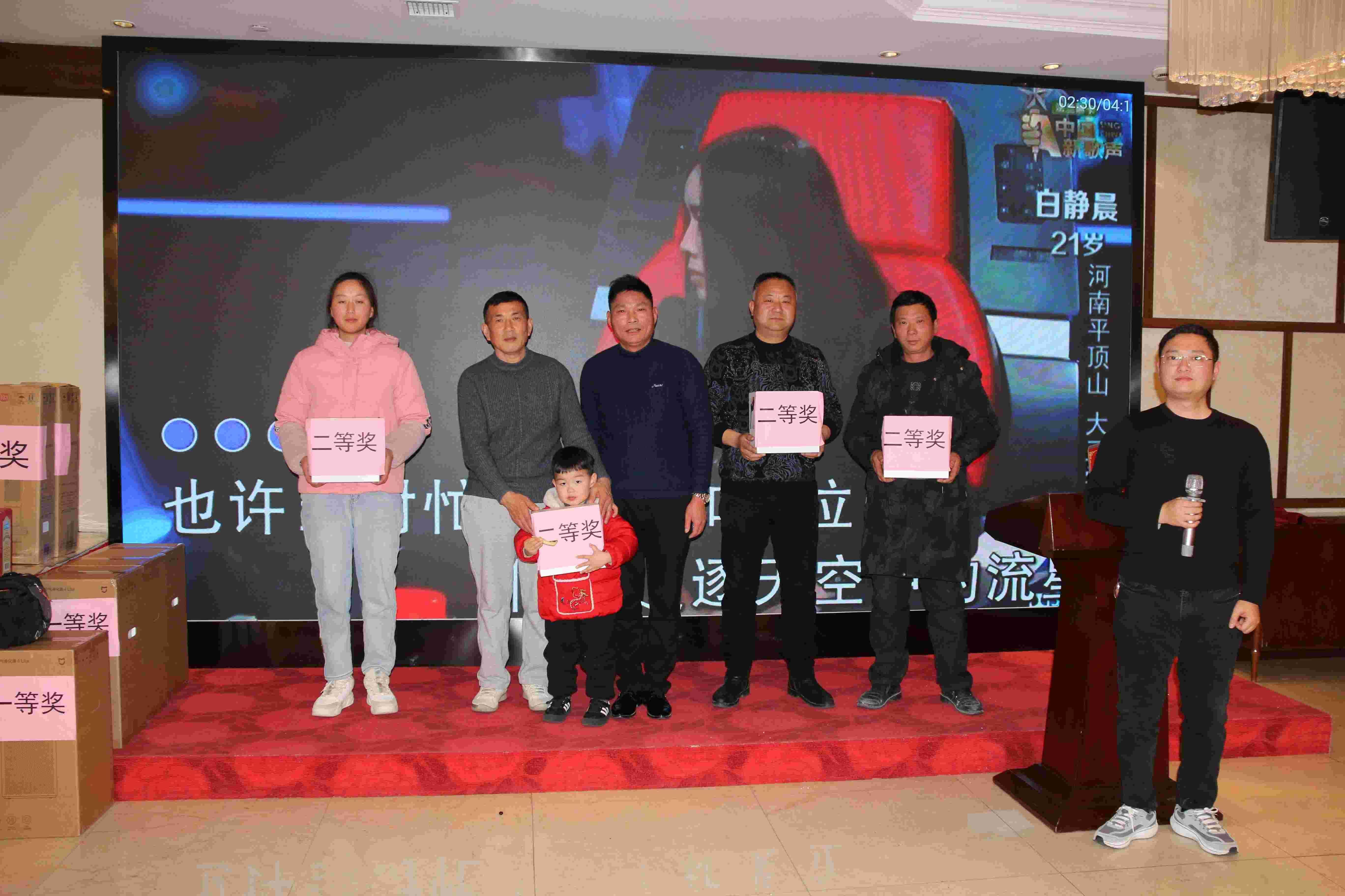 董事长为获得“圣域杯”比赛和晚会抽奖活动二等奖的幸运员工派发奖品